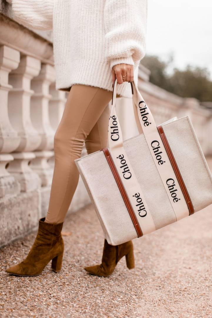 Chloe canvas tote bag with dust bag(688-1 biege)
