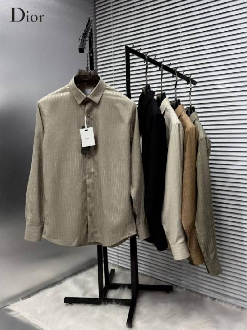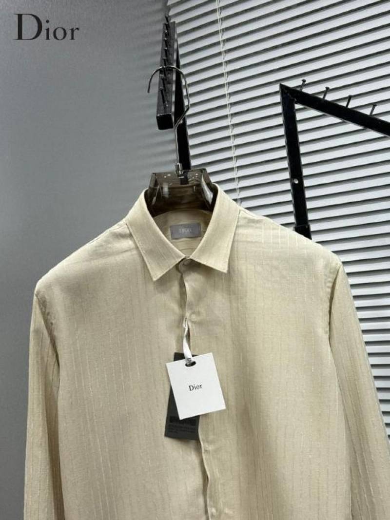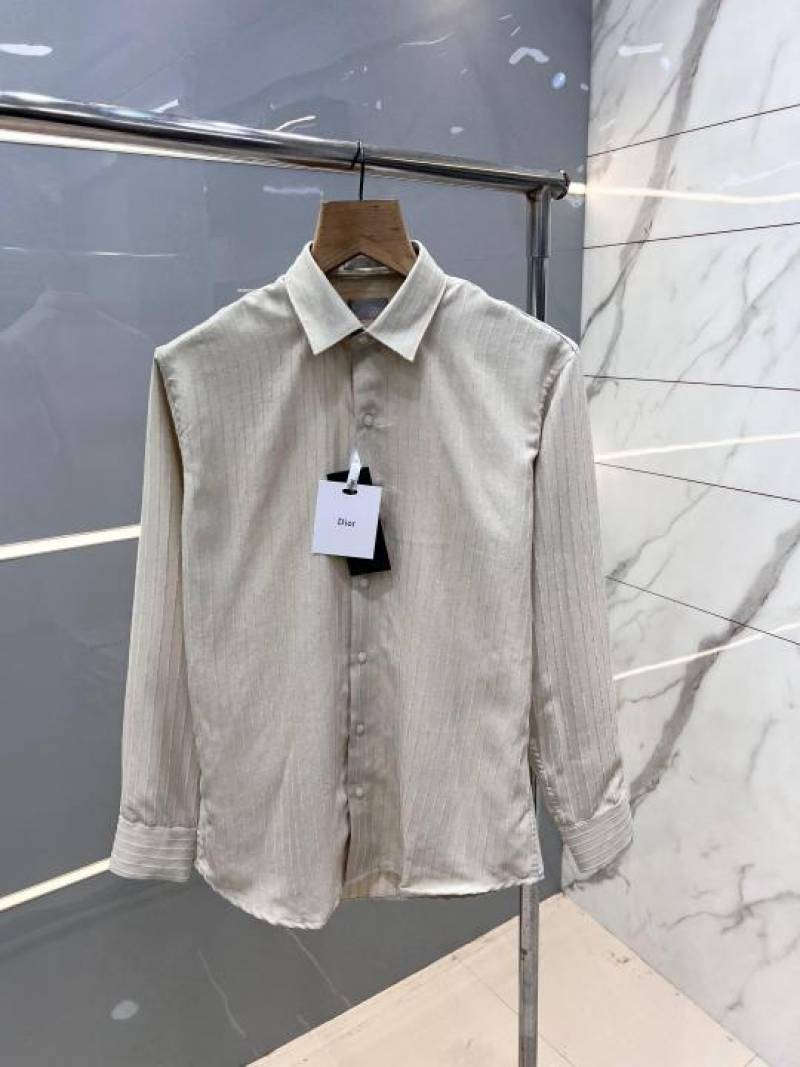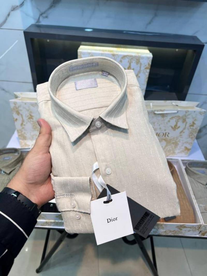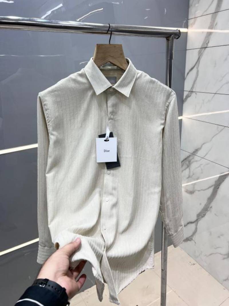 Christian Dio r Cream Jacquard lycra Imported Shirt with Brand Box and Carry Bag 2637