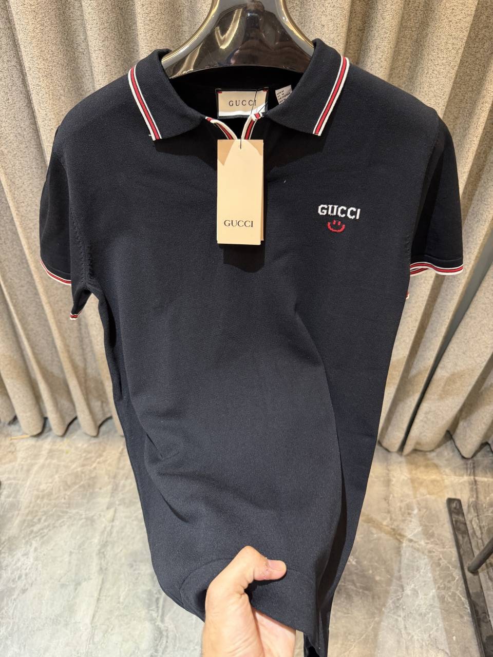 GUCC_i BLACK WHITE LOGO PREMIUM QUALITY POLO TSHIRT