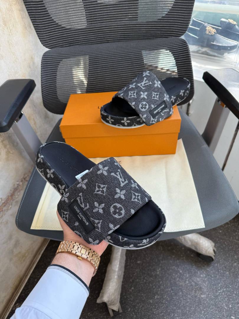 louis Vuitto.n l.v Monogram Black White Premium Slides