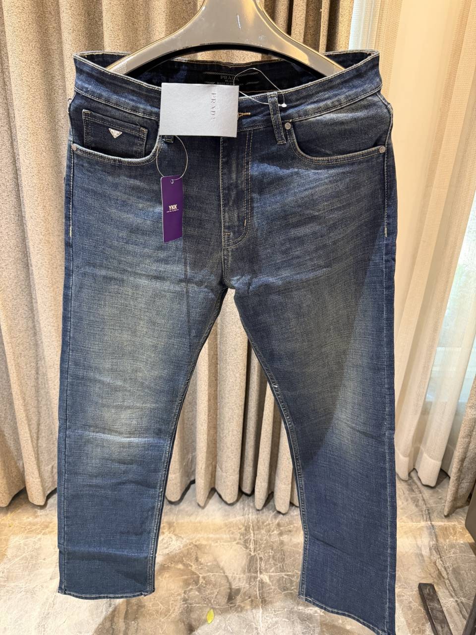 • PRAD_a DARK BLUE REGULAR FIT DENIM JEANS